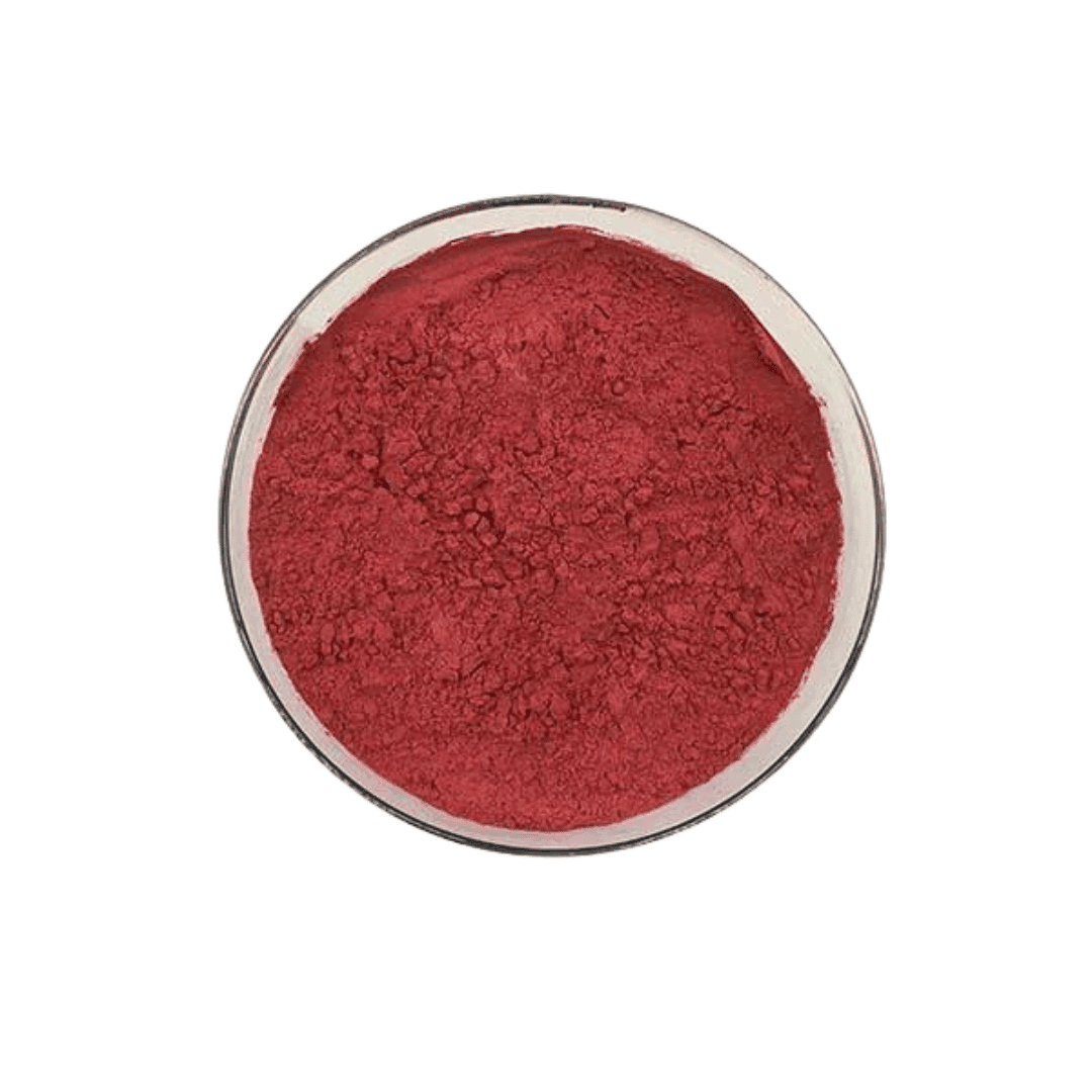 Lycopene powder is a type of carotenoid found in plant-based foods and serves as a red pigment. It appears as dark red needle-like crystals, dissolving easily in substances like chloroform, benzene, and oils but not in water. Lycopene is sensitive to light and oxygen, turning brownish when exposed to iron. Its chemical formula is C40H56, with a molecular weight of 536.85. The structure includes 11 conjugated double bonds and 2 non-conjugated double bonds, forming a linear hydrocarbon chain. While it lacks the activity of vitamin A, it exhibits strong antioxidant properties. Higher concentrations are present in ripe red fruits, particularly in tomatoes, carrots, watermelons, papayas, and guavas. It functions as a coloring agent in food production and as a base for antioxidant dietary supplements. Lycopene is commonly found in tomatoes, tomato-derived products, watermelons, and grapefruits, serving as the primary pigment in fully ripened tomatoes and one of the most prevalent carotenoids.